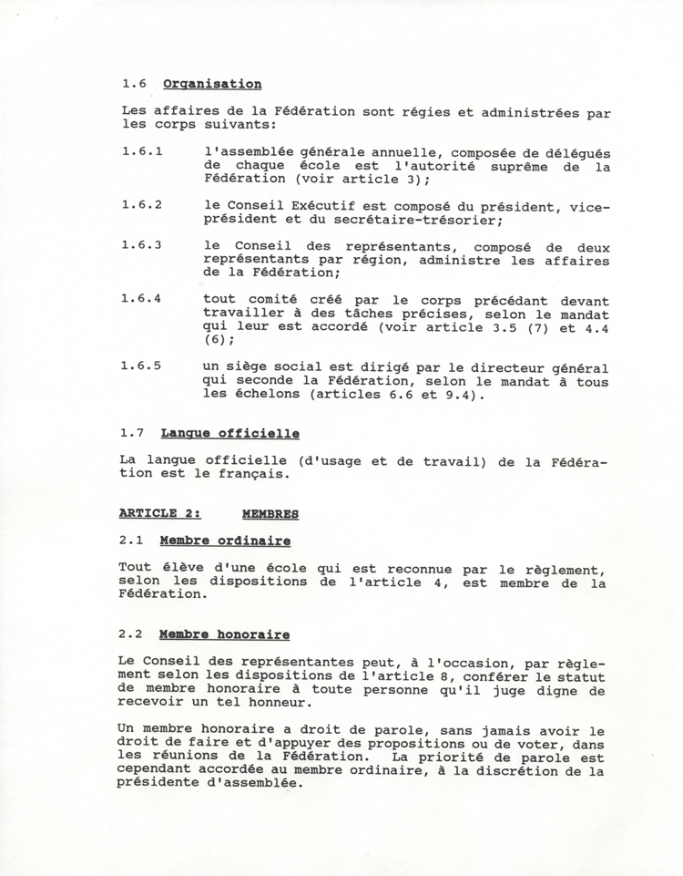 Constitution de la Fédération des élèves du secondaire franco-ontarien (FESFO), p. 3, 1990.