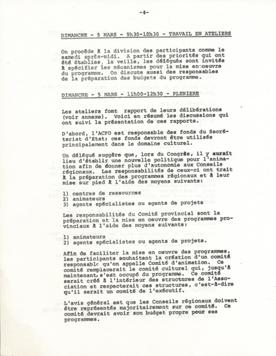 Rapport du colloque pour réviser le programme d'animation, les 3, 4 et 5 mars 1972, à Touraine (Gatineau, Québec), p. 4, 1972. Université d'Ottawa, CRCCF, Fonds Association canadienne-française de l'Ontario (C2), C2/278/2.